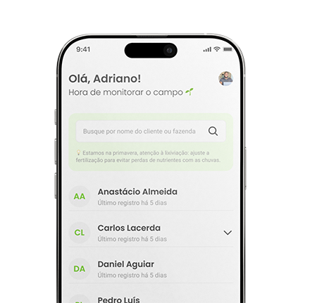 Sem retrabalho. Sem ficar procurando informação perdida. O tempo que você ganha deixando a tecnologia cuidar do administrativo é o tempo que volta para onde realmente importa: construindo relacionamento, entendendo a necessidade do produtor, estando presente no momento certo.